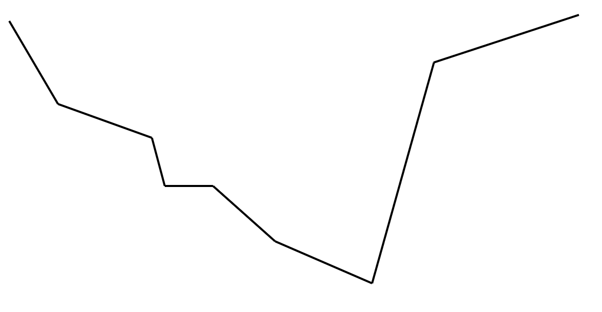 두 별에 대한 모든 거리 그래프를 겹친 후에 그 중 최댓값을 뽑아낸 그래프 G'를 생각해보자. 그러면 아래로 볼록한 그래프가 나오게 된다. 정확히 아래로 볼록한 그래프가 아니라 정확히 말하자면 G'에서 최소점의 x위치를 알 수 있고 임의의 두 위치에 대해서 x<x1<x2면 f(x1)<=f(x2) 이고, x2<x1<x 여도 f(x1)<=f(x2)이다. 그림으로 그리면 아래와 같이 나오게 된다.
