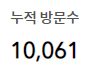 이렇게 꾸준히 하루에 70~80 명 정도가 블로그를 보러 와주신 덕분에 드디어 누적 방문자수 10000명을 돌파했다!!! 맨 처음에는 하루에 10명 정도만 봐도 좋았는데, 어느새 이렇게 커버린 블로그를 보니 굉장히 뿌듯했다.