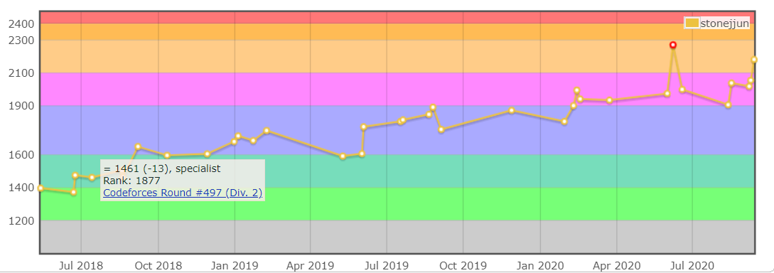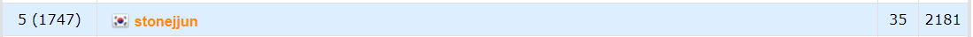 현재 레이팅은 2181. 한국 60등, 세계 1700등대, 교내 5등을 기록했다.