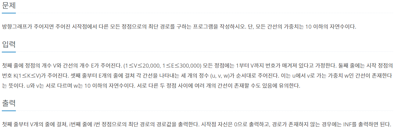 문제 태그 : https://www.acmicpc.net/problem/1753