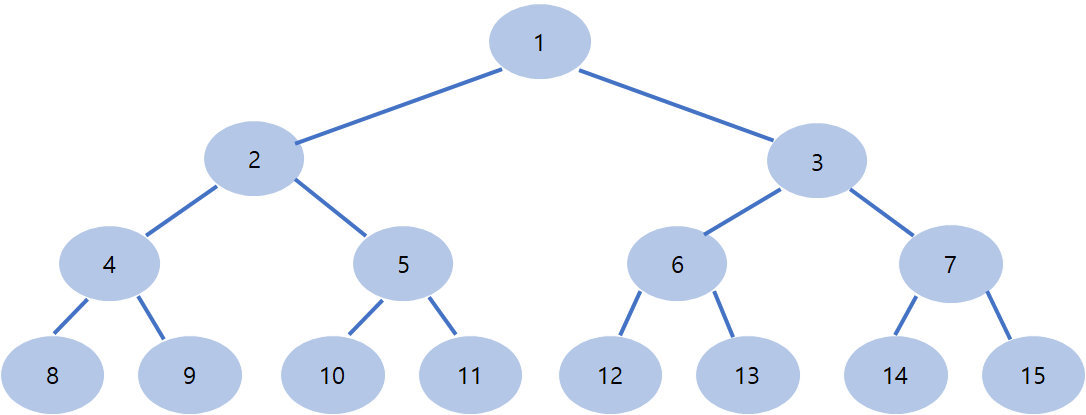 이 그림은 그냥 순서대로 노드에 번호를 매긴것이다. 여기서 자식과 부모의 노드 번호 관계를 잘 보자. 세그트리가 완전 이진트리이기 때문에 나타나는 특징으로 번호x 인 노드에 대해서 좌측 자식 노드는 x*2 우측 자식 노드는 x*2+1이라는 특징이 있다. 이를 이용해 보통 재귀적으로 코드를 짠다.