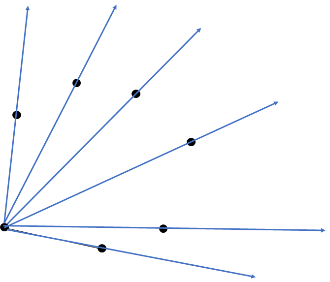 예를 들어서 3번 반직선과 4번 반직선 사이에 점이 있다는 것을 알게 되었으면 점이 아래의 삼각형안에 있는지만 확인하면 된다.