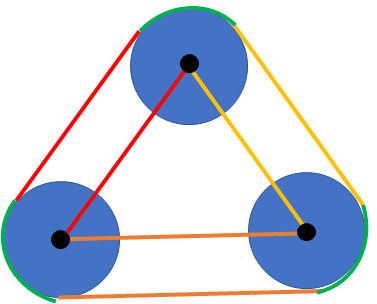 그림을 보면 알겠지만, 바깥의 전체 둘레의 길이는 원하나의 둘레+ 점 들 사이의 거리의 합이다. 이 그림을 고려하며 문제를 다시 보면, 볼록껍질을 이루는 점들의 이웃한 거리의 합 + 원 하나의 둘레가 정답이 된다는 것을 알 수 있다.