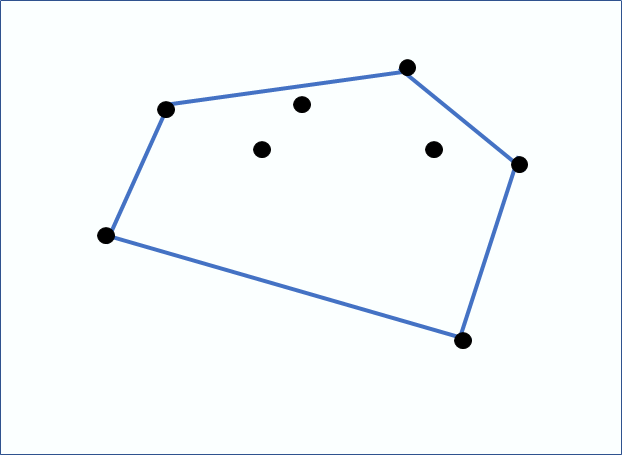 왼쪽과 같이 점들이 있을때 그라함 알고리즘을 이용하여 컨벡스 헐을 잡을 수 있다.